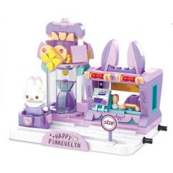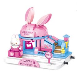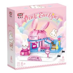 WISDOM TREE T1011-1 1011-1 T1011-2 1011-2 T1011-3 1011-3 T1011-4 1011-4 Pink Evelyn thuộc thể loại Xếp hình Girl Con Gái nhà kem màu xanh, cửa hàng quần áo màu tím, bánh cam, nhà thỏ màu hồng.