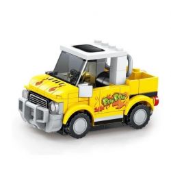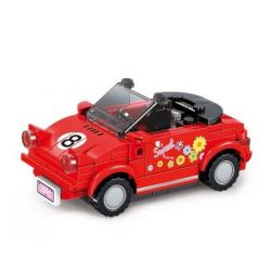 SEMBO 607342 607343 607344 607345 Famous Car thuộc thể loại Xếp hình Racers Đua Tốc Độ xe mui trần mini màu xanh, Xe bán tải địa hình màu vàng, xe mui trần màu đỏ, Quán đậu phụ AE48.