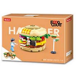 SLUBAN CREATIVE STYLE STREET FOOD M38 Food Court thuộc thể loại Xếp hình City Thành Phố bánh hamburger, Khoai tây chiên Naishoya, Nhà Hot Dog Hot Dog, Trạm đồ uống Nước giải khát, Nhà hàng Sushi Sushi, Nhà hàng ramen Nhật Bản Mì, Kem Sakura, Ngôi nhà bánh kẹo ngọt ngào.