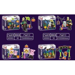 SEMBO 605001 605002 605003 605004 605005 605006 605007 605008 thuộc thể loại Xếp hình Halloween Lễ Hội Hóa Trang Ma Quỷ ma cà rồng, bia mộ, con lợn, Đàn ghi ta, âm trầm, Bộ trống, DJ gãi, bóng ma.