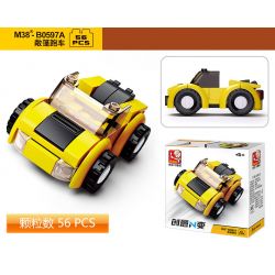 SLUBAN M38 thuộc thể loại Xếp hình Creator Sáng Tạo xe mui trần màu vàng, Xe địa hình màu xanh lá cây, đầu xe tải màu xanh, Xe đua F3 màu đỏ.