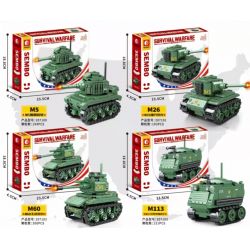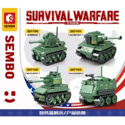 SEMBO 207101 207102 207103 207100 Survival Warfare thuộc thể loại Xếp hình Military Army Quân Sự Bộ Đội M5 Stuart, Xe tăng Pershing M26, Xe tăng chiến đấu chủ lực M60, Xe bọc thép chở quân M113.