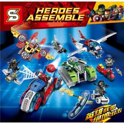 SHENG YUAN SY 7012A 7012B 7012C 7012D Heroes Assemble thuộc thể loại Xếp hình Super Heroes Siêu Nhân Anh Hùng Xe đạp tốc độ nhện, Máy bay chiến đấu đa chức năng bằng thép, Máy bay chiến đấu tốc độ ánh sáng của Mỹ, Xe xích của Hulk.