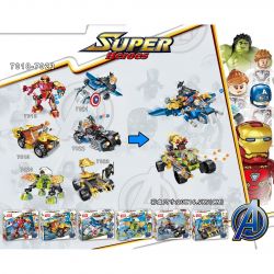 JISI 7018 7019 7020 7021 7022 7023 SuperHeroes thuộc thể loại Xếp hình Marvel Super Heroes Siêu Anh Hùng Marvel Người sắt Hulkbuster, SUV góa phụ đen, Người máy bốn chân của Hulk, máy bay chiến đấu đội trưởng mỹ, xe gắn máy thor, Xe ngựa bọ cạp Ronin Hawkeye.