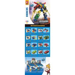 SEMBO 103284 103285 103286 103287 103288 103289 103290 103291 Mecha of Steel thuộc thể loại Xếp hình Transformers Robot Đại Chiến Người Máy Biến Hình Thân cây, Pháo sau, võ sĩ thắt lưng, màu xanh lá, xe bán tải màu xanh, đầu xe tải màu đỏ, xe thể thao xanh, mui trần màu đỏ.