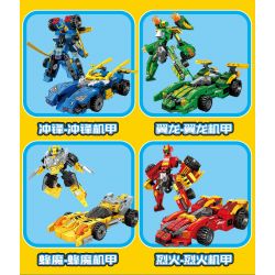 SEMBO 103281 103282 103283 103280 Mecha of Steel thuộc thể loại Xếp hình Transformers Robot Đại Chiến Người Máy Biến Hình màu xanh da trời, màu xanh lá, màu vàng, màu đỏ.